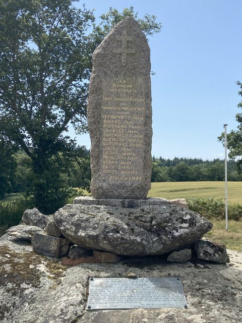 L’après-midi, nous nous rendons d’abord devant la stèle commémorative du maquis de Coat-Mallouen, érigée en hommage aux résistants tombés en juillet 1944. Beaucoup étaient très jeunes, parfois à peine majeurs, et leur sacrifice reste un rappel émouvant du prix de la liberté. Le moment de recueillement partagé par le groupe fut sobre mais chargé de sens.