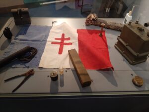 A notre arrivée, nous sommes accueillis au musée de la Résistance en Argoat par Alain Quillévéré qui nous accompagne pendant près de 2h30 pour une visite commentée des différentes salles du musée. Grâce à ses explications vivantes et précises, les événements de la Seconde Guerre mondiale ont pris une dimension très humaine : on comprend mieux le quotidien sous l’Occupation, le rôle des parachutages alliés, l’organisation des maquis et surtout le courage de ces femmes et hommes qui se sont engagés au péril de leur vie. L’écoute attentive de chacun témoignait de l’intérêt et de l’émotion suscitée par cette visite.
