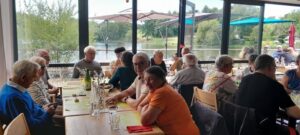À 12h30, nous nous retrouvons à l’auberge de l’Étang Neuf pour un déjeuner convivial, qui permet à chacun d’échanger ses impressions dans une atmosphère chaleureuse.